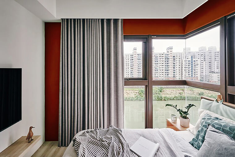 在考慮色彩配置時,若無法接受飽和度太高的紅,非常推薦使用大寶R8855-40D故宮紅,屬于低彩度深紅色系,除了與上述顏色搭配外,更適合放在空間某處作為焦點,例如玄關、電視背景墻..等,讓人不自覺的往此處吸引,在視覺上擁有亮點帶出時尚摩登感。
