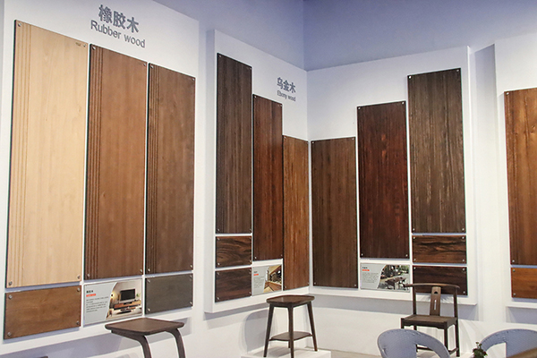 其展示精致與美學共存的色板,以黑檀、烏金木、白蠟木、黑胡桃和奧古曼等為代表的多種素材,呈現(xiàn)了色彩多樣化,工藝環(huán)保化趨勢,滿足了用戶對于不同風格的需求。