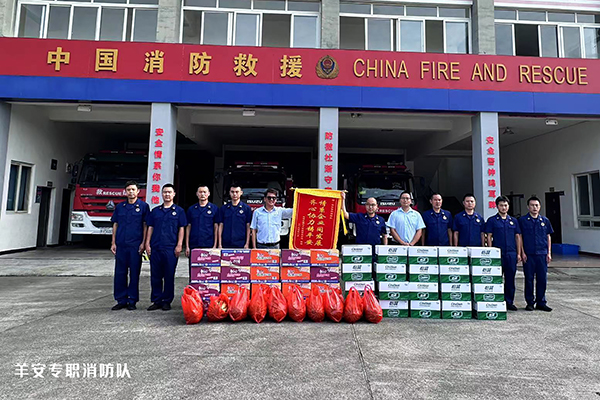 在“八一”建軍節(jié)來臨之際,成都大寶化工制品有限公司管理部副理賴俊良、副課長段亞波和楊路等一行人,帶著誠摯的問候和深深的敬意,來到邛崍市消防救援大隊及羊安專職消防隊,慰問奮戰(zhàn)在火海前線、保衛(wèi)一方平安的消防官兵,為他們送上夏日的清涼。