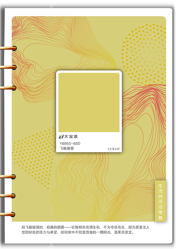 色彩敘事:一只飛蛾破繭時(shí),翅膀初展的那抹帶著綠意的黃。如同陽光斑點(diǎn),為家注入恰到好處的活力與希望。